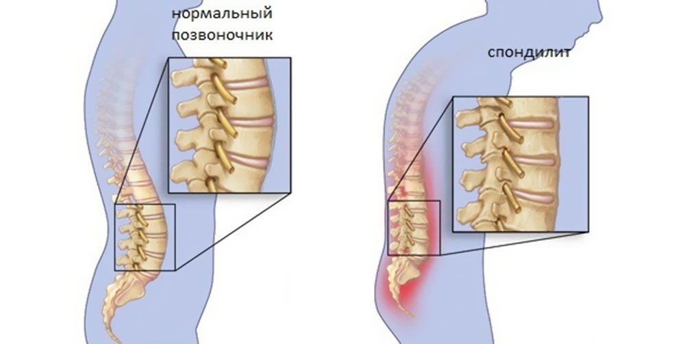 Если у больного развивается спондилит, то симптомы в таком случае могут быть следующими: