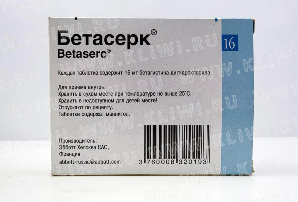 Лекарственная форма – таблетки: плоскоцилиндрической формы, почти белого или белого цвета; таблетки 8 мг – с фаской, таблетки 16 и 24 мг – с риской и фаской (по 5, 7, 10, 14 и 20 шт. в контурных ячейковых упаковках, в картонной пачке 1, 2, 3, 4, 5, 6 или 10 упаковок; по 20 и 30 шт. в полимерных флаконах или банках, в картонной пачке 1 банка или 1 флакон). Активное вещество: бетагистина дигидрохлорид, в 1 таблетке – 8, 16 или 24 мг.