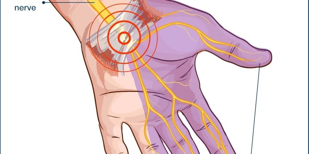 Туннельный синдром запястья — это состояние, при котором нерв сдавливается в канале запястья. Это может вызвать болезненные ощущения, которые распространяются до мизинца на правой руке.