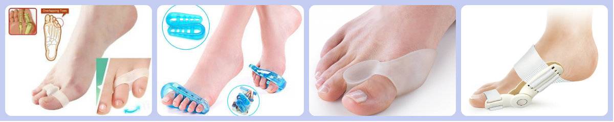 Если пациент обратился к врачу, когда опухла косточка на большом пальце ноги на ранних стадиях, то эффективным является использование ортопедических средств таких как: