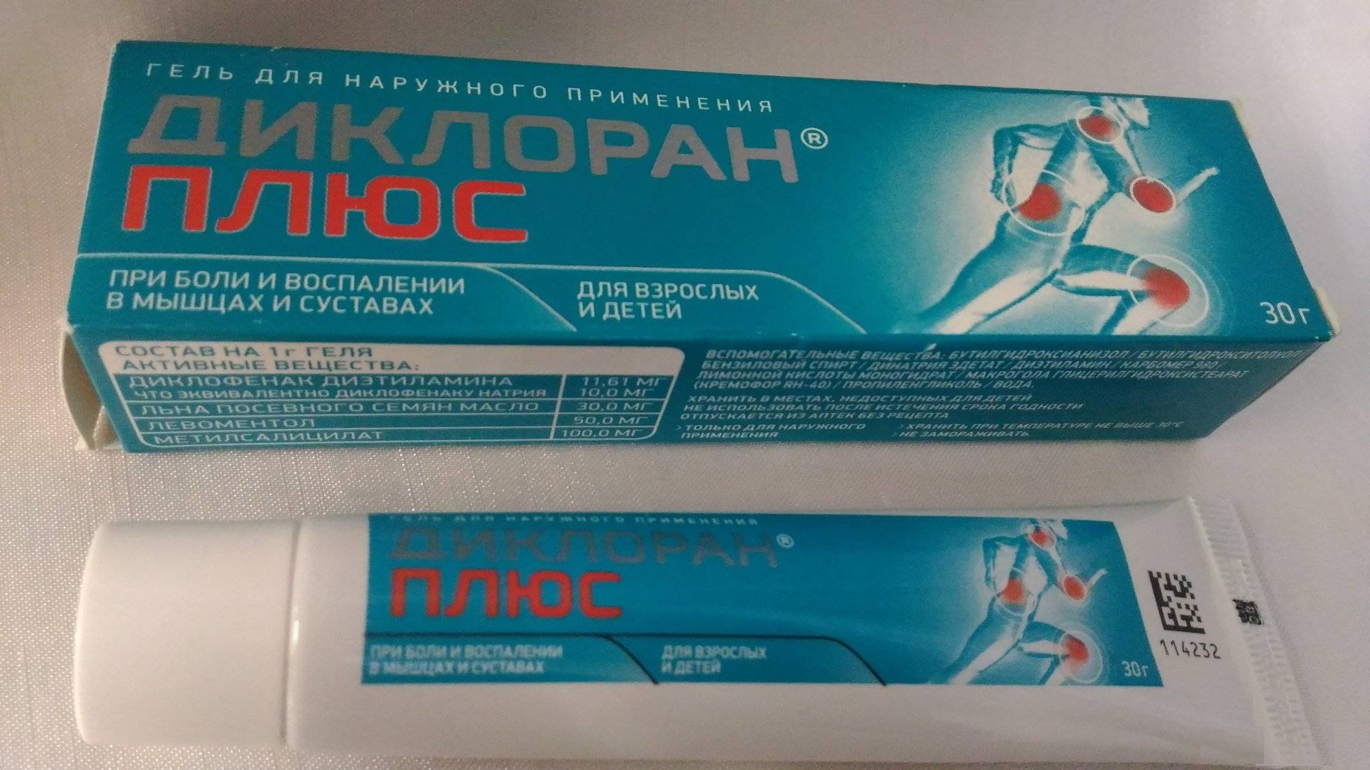 - «Диклоран плюс» – гель 1 %, выпускаемый в России и Индии. Помимо диклофенака, в состав средства входят масло семян льна, левомицетин, метилсалицилат.
