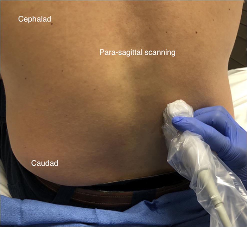 Парасагиттальное сканирование может быть использовано для определения точного уровня позвоночника перед процедурой.