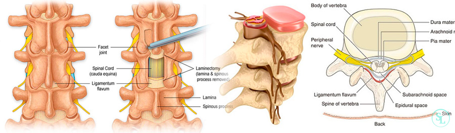 Из-за разрыва дисков, костных наростов и других патологий происходит сужение канала позвоночника, через которые идут нервы и спинной мозг. Ламинэктомия удаляет часть диска, чтобы расширился канал и снялось нервное напряжение, что приведет к налаживанию самочувствия пациента.