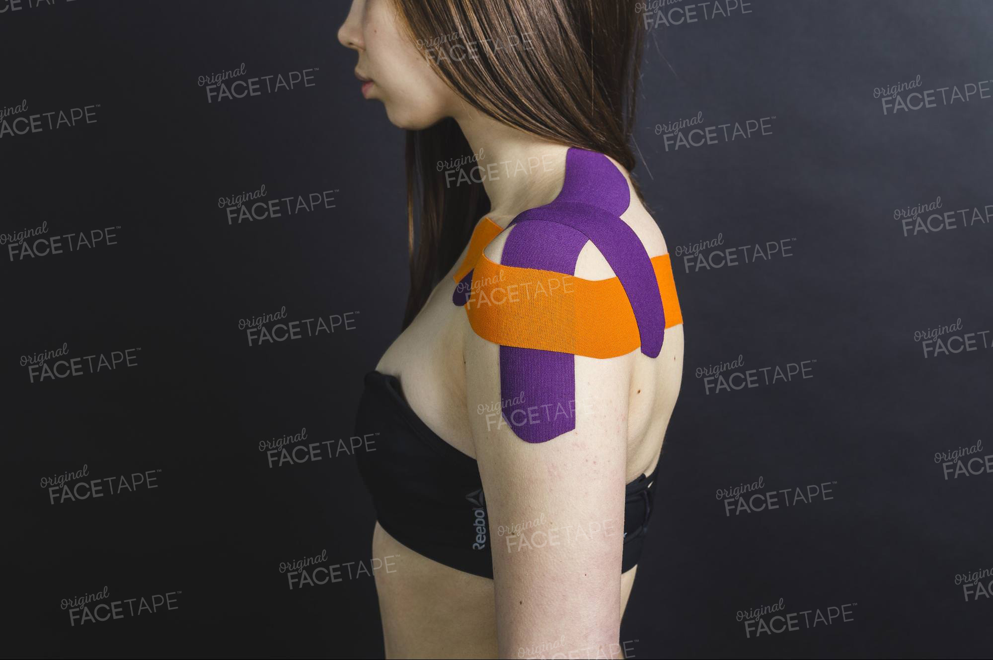 Наложение пластырей на область плеча — альтернатива массажу и медикаментозному лечению. Чтобы зафиксировать мышцу, которая болит, в правильном положении, часто используют бинт. Очевидное преимущество тейпирования перед медицинскими эластичными бинтами — это то, что они не перетягивают мягкие ткани.