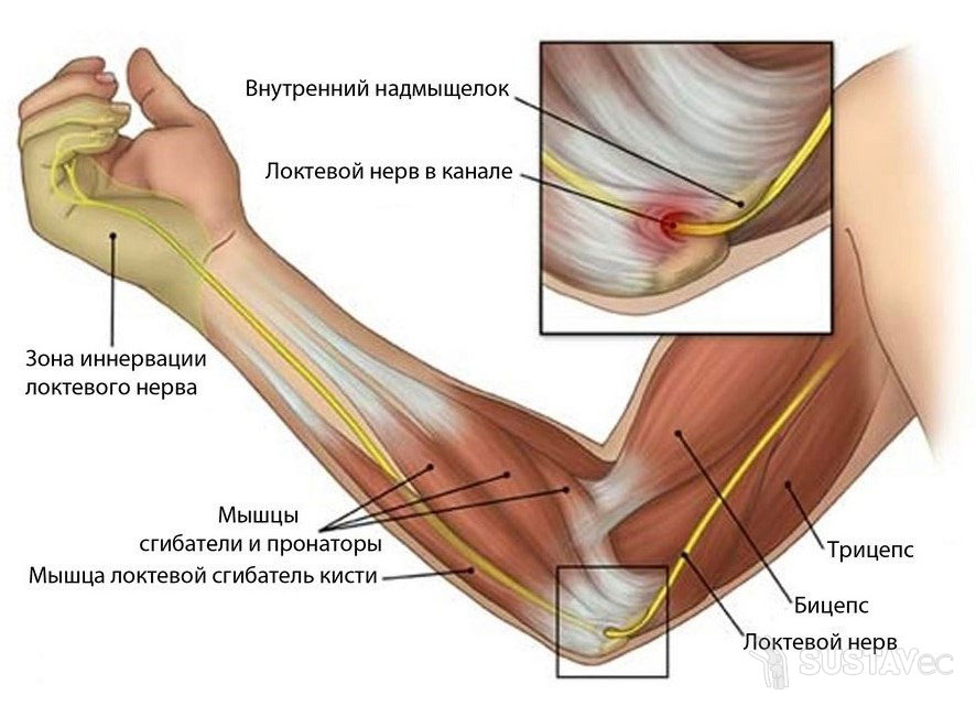 - пронатор. Это круглая мышца является самой толстой и короткой, и относится к поверхностному слою сустава. Мышца начинается от надмыщелка плечевой кости, и доходит до костного отростка блоковидной вырезки. При повреждении мыщелка плечевой кости, невозможно согнуть конечность в предплечье. К ограниченности движения добавляется формирование сильной боли;
