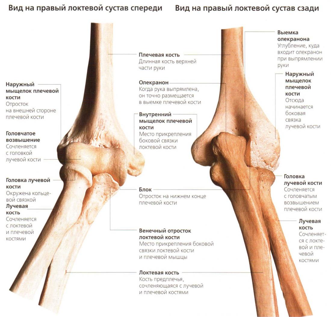 Лучевая и плечевая кость соединены головкой мыщелка и его ямкой. Сам сустав имеет вид шара, но это не мешает ему вращаться, разгибаться, сгибаться.