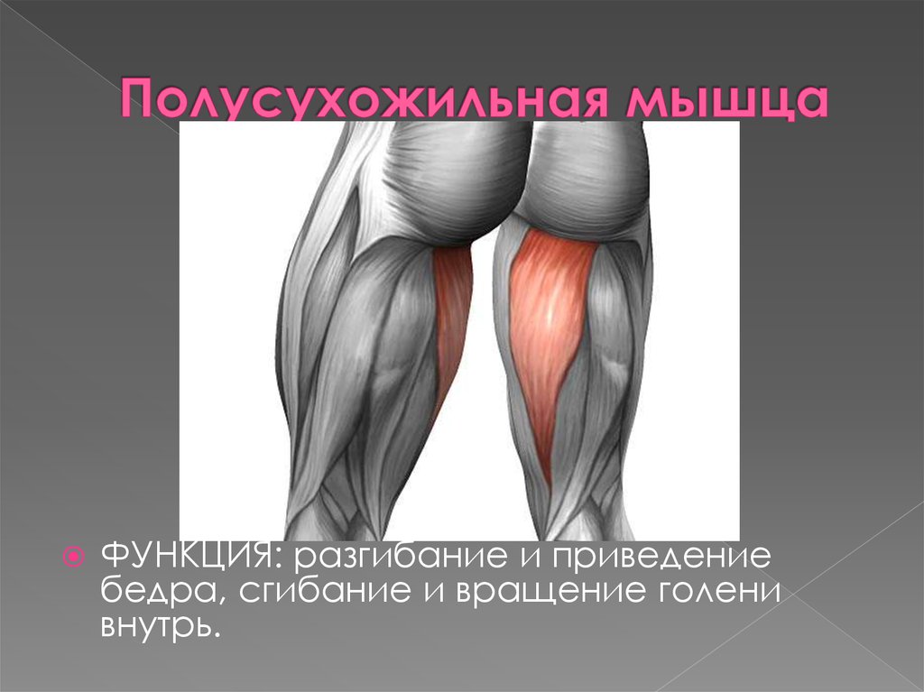 Главной функцией полусухожильной мышцы является регулирование наклона тела в тазобедренном суставе. Иногда ее ошибочно принимают за бицепс бедра из-за похожего назначения. Полусухожильная мышца выполняет те же функции, за исключением одной – вращение голени внутрь. В середине полусухожильной мышцы расположены сухожильные перепонки, поэтому она и называется полусухожильной.