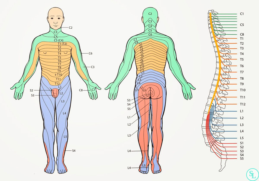 - Радикулопатия — снижение функциональности, вплоть до полной ее потери в верхней части тела из-за сдавливания спинномозгового корешка на уровне шеи.