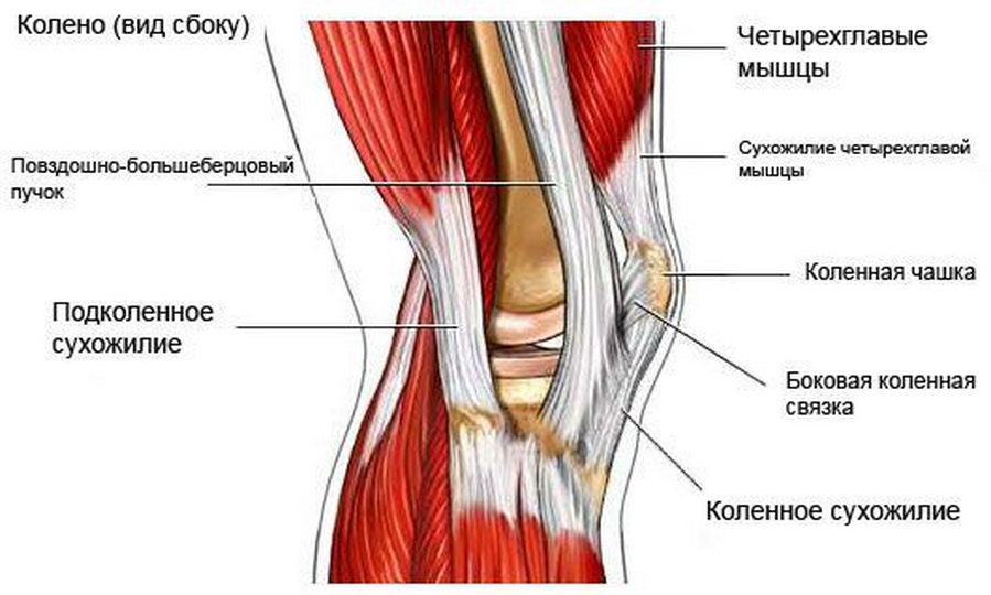 Особенность анатомии коленного сустава — наличие сумочных и коллатеральных связок.