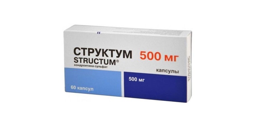 - Структум. Это желтые капсулы для перорального приема, которые регулируют метаболизм в тканях гиалинового и волокнистого хряща. Принимать рекомендуется по 1 шт. 2 раза за день. Курс – до полугода.