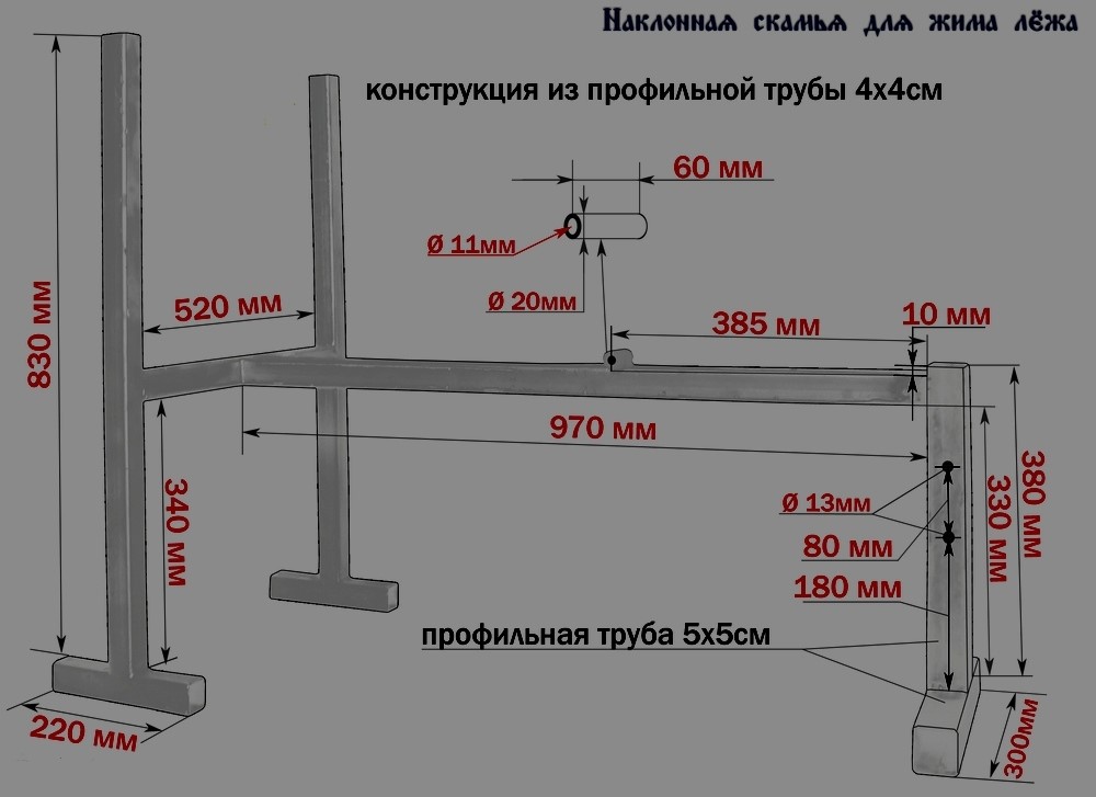 Для примера прикладывается фото чертежа, для изготовления одного из вариантов скамьи для жима.