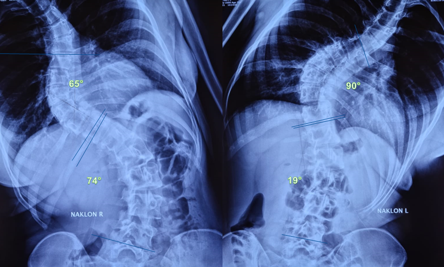 Когда позвоночник отклонён от 25 до 50 градусов это значимо меняет конфигурацию костей. Происходят отклонения в мышечной массе, плечи перекашиваются, а грудная клетка видоизменяется.