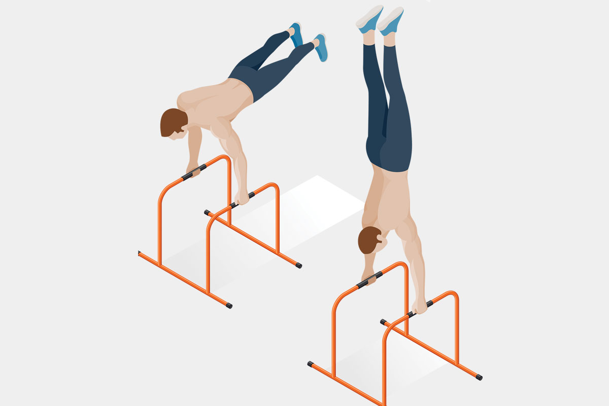 Стойка на брусьях — одно из самых мощных упражнений для прокачки верхней половины корпуса и комплексного укрепления спины. Упражнение допускает множество вариаций — в том числе, отжимания в горизонтальной и вертикальной плоскостях.