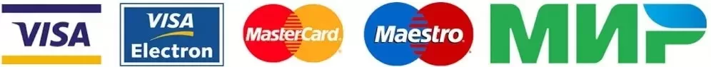 Принимаются к оплате пластиковые карты MasterCard, VISA, Maestro, МИР.