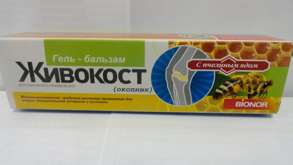 - Живокост на основе пчелиного яда (цена около 150-160 рублей);
